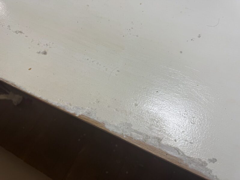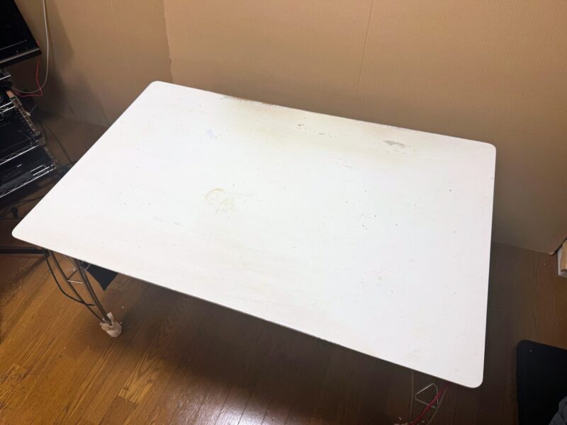 塗り直したテーブルは、結構快適に使っていたのですが、やはり素人塗装の限界か3年過ぎくらいで表面が怪しくなってきて、4年を過ぎると結構ハゲてきました。